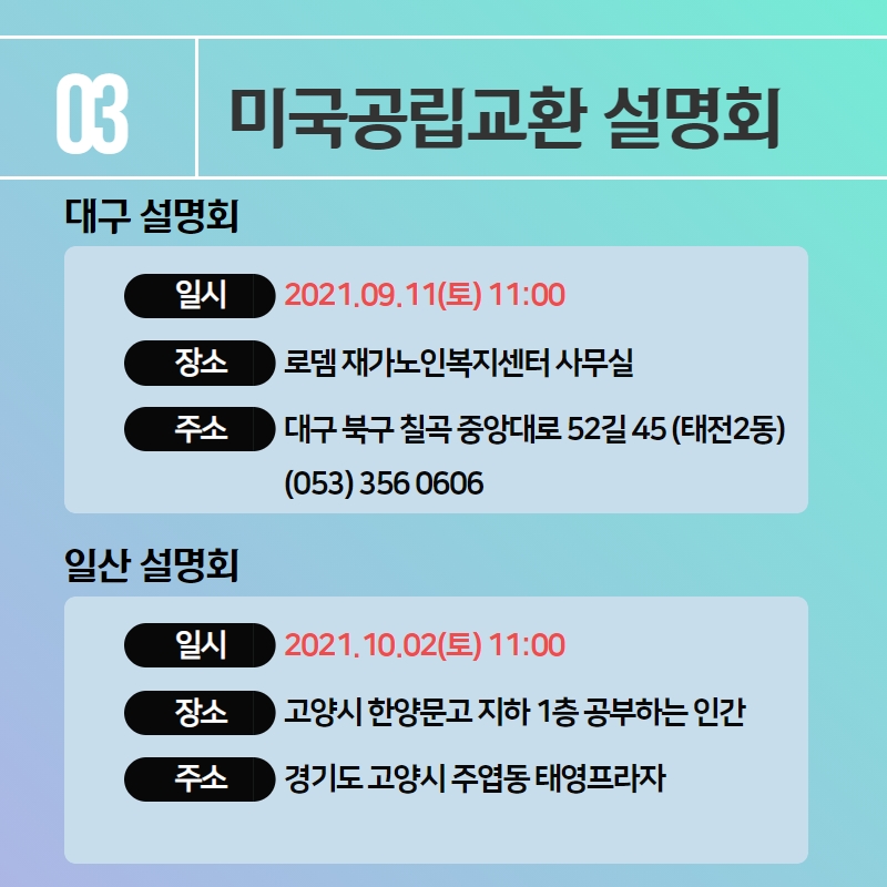 | ´ÙÀ½±Û | ¹Ì±¹¹«ºÎ ±³È¯Çлý ¼±¹ß ¼³¸íȸ- ÀÏ»ê ¼³¸íȸ (10¿ù 2ÀÏ Åä¿äÀÏ 11:00) |